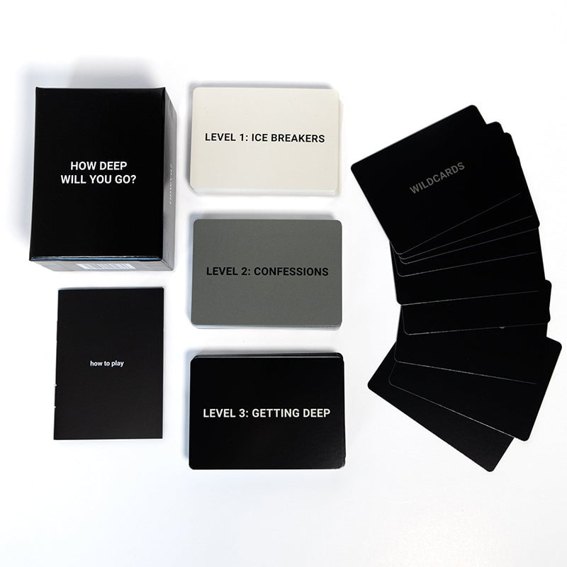 {"id":7597313851453,"title":"How Deep Will You Go? Original Conversation Game","handle":"how-deep-will-you-go-original-conversation-game","description":"\u003ch2 style=\"text-align: center;\"\u003e\u003cspan style=\"color: rgb(255, 42, 0);\"\u003e\u003cstrong\u003eHow Deep Will You Go? Original Conversation Game\u003c\/strong\u003e\u003c\/span\u003e\u003c\/h2\u003e\n\u003cp\u003e\u003cspan style=\"color: rgb(0, 0, 0);\"\u003e\u003cstrong\u003e\u003cimg alt=\"\" src=\"https:\/\/cdn.shopify.com\/s\/files\/1\/0598\/4334\/6601\/files\/17294051763833119250.png?v=1727251885\" width=\"262\" height=\"262\" style=\"display: block; margin-left: auto; margin-right: auto;\"\u003e\u003c\/strong\u003e\u003c\/span\u003e\u003c\/p\u003e\n\u003ch2\u003eProduct Description\u003c\/h2\u003e\n\u003cp\u003e\u003cspan style=\"color: rgb(0, 0, 0);\"\u003eOur original game helps you build deeper bonds without the pressure. It puts vulnerable and honest questions into an easy practice 'game' to bring the deepest, most fulfilling conversations to life. Our method will lead to a beautiful connection with anyone.\u003c\/span\u003e\u003c\/p\u003e\n\u003ch3 dir=\"ltr\"\u003e\u003cspan\u003e\u003cstrong\u003eFEATURES\u003c\/strong\u003e\u003c\/span\u003e\u003c\/h3\u003e\n\u003cp\u003e\u003cspan style=\"color: rgb(0, 0, 0);\"\u003eLevel 1 is all about breaking the ice, but ditching boring, cookie-cutter conversation starters. They take a spin on your average icebreaker questions.\u003c\/span\u003e\u003c\/p\u003e\n\u003cp\u003e\u003cspan style=\"color: rgb(0, 0, 0);\"\u003eLevel 2 digs a bit deeper. Some fun, some real, and some getting things off your chest. These help you have conversations you never knew how to start.\u003c\/span\u003e\u003c\/p\u003e\n\u003cp\u003e\u003cspan style=\"color: rgb(0, 0, 0);\"\u003eLevel 3 is how you see the side of someone you've never seen. These allow vulnerability to show in a way that feels deeply healing.\u003c\/span\u003e\u003c\/p\u003e\n\u003cp\u003e\u003cspan style=\"color: rgb(0, 0, 0);\"\u003eThe wildcards are challenges that help you practice being a better person. We keep these secrets until the game is yours.\u003c\/span\u003e\u003c\/p\u003e\n\u003cul\u003e\n\u003cli\u003e\u003cspan style=\"color: rgb(0, 0, 0);\"\u003e99 question cards and challenge cards\u003c\/span\u003e\u003c\/li\u003e\n\u003cli\u003e\u003cspan style=\"color: rgb(0, 0, 0);\"\u003eInstructions included\u003c\/span\u003e\u003c\/li\u003e\n\u003cli\u003e\n\u003cspan style=\"color: rgb(0, 0, 0);\"\u003e2-8 players\u003c\/span\u003e\u003cspan style=\"color: rgb(0, 0, 0);\"\u003e\u003cstrong\u003e\u003c\/strong\u003e\u003c\/span\u003e\n\u003c\/li\u003e\n\u003c\/ul\u003e\n\u003ch3 dir=\"ltr\"\u003e\u003cspan\u003e\u003cstrong\u003ePACKAGE INCLUDED\u003c\/strong\u003e\u003c\/span\u003e\u003c\/h3\u003e\n\u003cp\u003e\u003cspan\u003e1 set × How Deep Will You Go?\u003c\/span\u003e\u003c\/p\u003e","published_at":"2025-03-18T20:26:30-10:00","created_at":"2025-03-18T20:26:49-10:00","vendor":"rushbat","type":"","tags":["gift ideas"],"price":2999,"price_min":2999,"price_max":2999,"available":true,"price_varies":false,"compare_at_price":5999,"compare_at_price_min":5999,"compare_at_price_max":5999,"compare_at_price_varies":false,"variants":[{"id":42170307903549,"title":"Original - Black","option1":"Original - Black","option2":null,"option3":null,"sku":"CP80257-E037","requires_shipping":true,"taxable":false,"featured_image":{"id":34218666098749,"product_id":7597313851453,"position":1,"created_at":"2025-03-18T20:26:50-10:00","updated_at":"2025-03-18T20:27:17-10:00","alt":null,"width":800,"height":800,"src":"\/\/www.rushbat.com\/cdn\/shop\/files\/159dddc0-2729-43fd-5301-2fe8e84a2f00.jpg?v=1742365637","variant_ids":[42170307903549]},"available":true,"name":"How Deep Will You Go? Original Conversation Game - Original - Black","public_title":"Original - Black","options":["Original - Black"],"price":2999,"weight":0,"compare_at_price":5999,"inventory_management":null,"barcode":null,"featured_media":{"alt":null,"id":25863352975421,"position":1,"preview_image":{"aspect_ratio":1.0,"height":800,"width":800,"src":"\/\/www.rushbat.com\/cdn\/shop\/files\/159dddc0-2729-43fd-5301-2fe8e84a2f00.jpg?v=1742365637"}},"requires_selling_plan":false,"selling_plan_allocations":[]}],"images":["\/\/www.rushbat.com\/cdn\/shop\/files\/159dddc0-2729-43fd-5301-2fe8e84a2f00.jpg?v=1742365637","\/\/www.rushbat.com\/cdn\/shop\/files\/f5d66261-0365-4cd2-bbc7-77e24378a700_551abefe-cbd5-4661-9f22-7f969dd869cb.jpg?v=1742365637","\/\/www.rushbat.com\/cdn\/shop\/files\/eb86c9ab-7226-497c-4f69-fdfcc5eef800_112b531c-7766-4121-9067-31dac720b9ff.jpg?v=1742365637","\/\/www.rushbat.com\/cdn\/shop\/files\/d7c09c76-94f8-4f2e-17e9-931e1ecd2200_019deb01-93f2-4079-a750-1e5e19067fba.jpg?v=1742365637","\/\/www.rushbat.com\/cdn\/shop\/files\/b0a9ce2b-a100-47c1-a964-b2fcbfa60e00_81d2b211-cab8-4486-b1d1-00fa08e3cd75.jpg?v=1742365637","\/\/www.rushbat.com\/cdn\/shop\/files\/9ef5a320-a61e-48f1-64ec-62eadb085400_9d254264-f75f-4ce7-987c-bd1605bccc21.jpg?v=1742365637","\/\/www.rushbat.com\/cdn\/shop\/files\/9d522f6f-8566-48ea-b439-03039222ac00_6762608c-3ff3-4499-8d31-ceca57337411.jpg?v=1742365637","\/\/www.rushbat.com\/cdn\/shop\/files\/8d44b62f-8e17-4b05-bfa2-db686db67300_cbabb223-9bdc-4252-abe2-b8bd409d1cdc.jpg?v=1742365637","\/\/www.rushbat.com\/cdn\/shop\/files\/6bb326c5-7137-404c-9ea9-c59fe9a66000_15706672-4159-4d9a-a038-ad02f1deef92.jpg?v=1742365637","\/\/www.rushbat.com\/cdn\/shop\/files\/6629945e-3207-4998-ea63-2c7e540d4e00_469efa7f-55f7-459a-ba8a-821c9b5b92a5.jpg?v=1742365637","\/\/www.rushbat.com\/cdn\/shop\/files\/652c0155-398c-49ce-8a80-f64015c66800_c0c15f1b-9324-4256-93cd-ab8cb16c38c6.jpg?v=1742365637","\/\/www.rushbat.com\/cdn\/shop\/files\/36cef5f3-9e88-41ff-0deb-e7453ba0b700_1f3f5f1a-0288-4580-9c72-cac4f08978f1.jpg?v=1742365637","\/\/www.rushbat.com\/cdn\/shop\/files\/159dddc0-2729-43fd-5301-2fe8e84a2f00_5c41a77d-46a3-44f7-b24d-65548cac4560.jpg?v=1742365637","\/\/www.rus